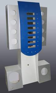 Демостенд предназначен для демонстрации 8-ми магнитол, 4-х пар акустики, 1 усилителя и 2-х сабвуферов.
