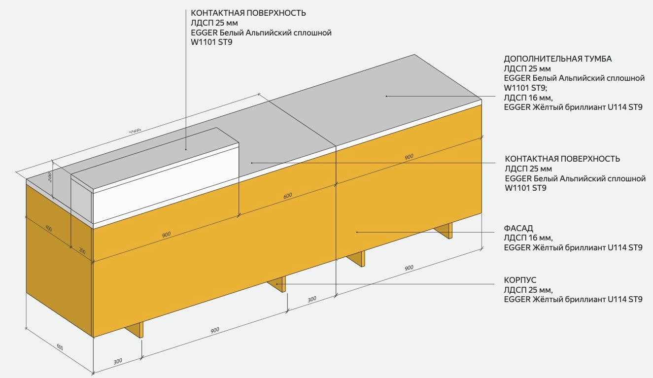 Дополнительная тумба 900 × 600 × 700 мм